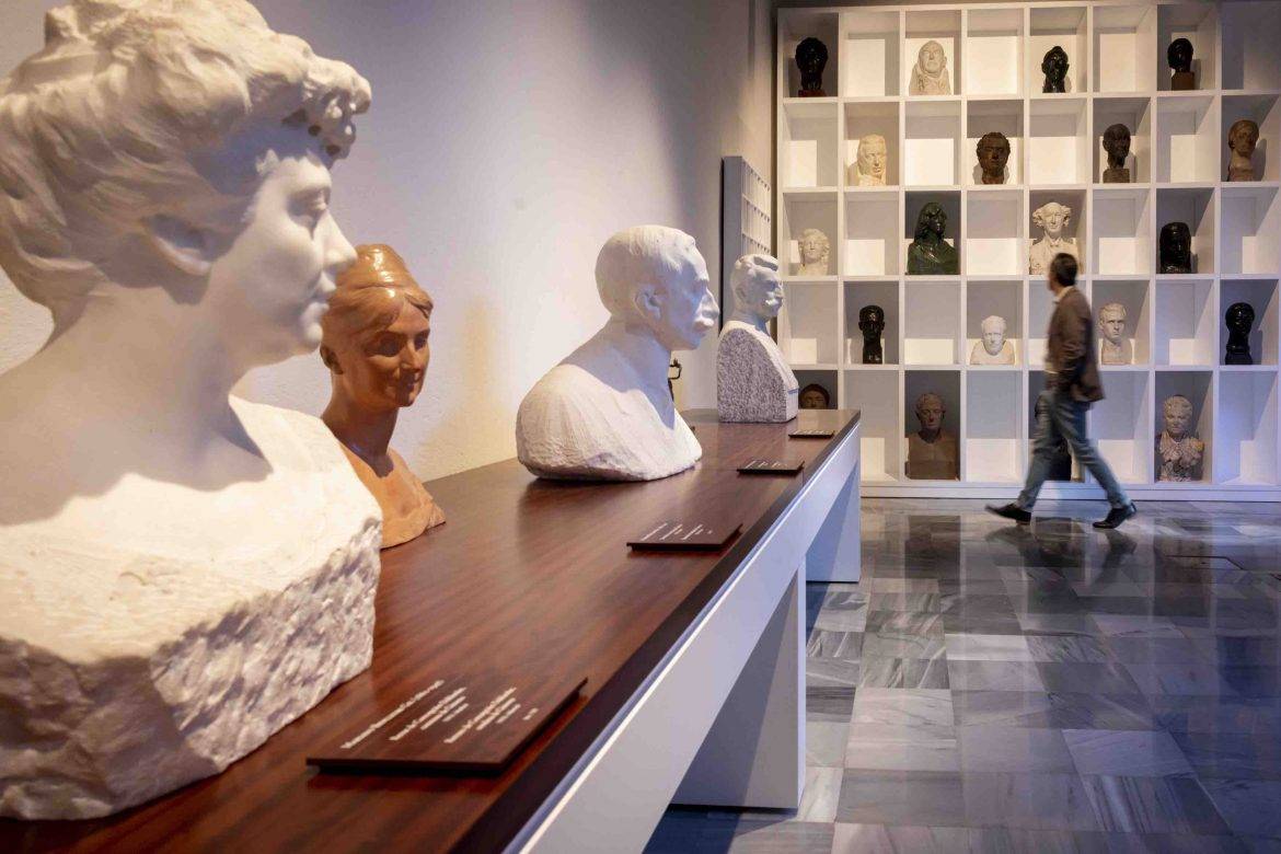 Con moti­vo de la nue­va ins­ta­la­ción, se han res­tau­ra­do 44 escul­tu­ras cus­to­dia­das en los alma­ce­nes del museo, tarea que ha lle­va­do a cabo Rober­to Ama­dor, res­tau­ra­dor espe­cia­lis­ta en escul­tu­ra que ha desa­rro­lla­do una tarea excep­cio­nal. Se ha inter­ve­ni­do en los mag­ní­fi­cos yesos de Mariano Ben­lliu­re (los retra­tos de la rei­na Vic­to­ria Euge­nia, del perio­dis­ta Anto­nio True­ba y del pia­nis­ta Emil von Sauer), la mayo­ría de los bus­tos que se expo­nen, como los del lite­ra­to y perio­dis­ta Teo­do­ro Llo­ren­te, el escri­tor Anto­nio Igual Úbe­da, el tore­ro Lagar­ti­jo, los arqui­tec­tos Fran­cis­co Mora Beren­guer y Javier Goer­lich, el pia­nis­ta y com­po­si­tor Cho­pin o el musi­có­lo­go López-Chá­­va­­rri, o pie­zas sin­gu­la­res como los Mui­xe­ran­guers de Alge­me­sí, obra de Leo­nar­do Borràs Artal.