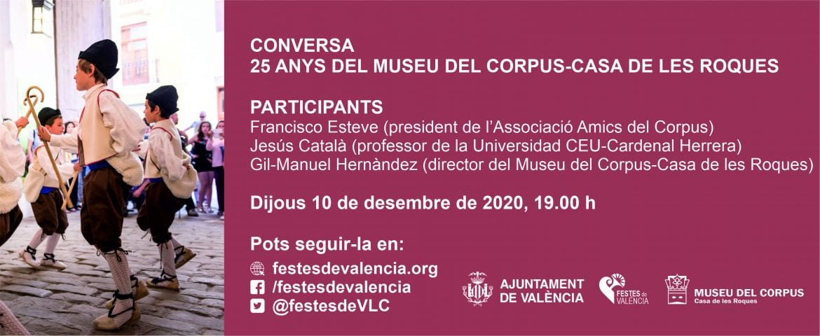 D’altra banda, dijous 10 de desembre a les 19 hores tindrà lloc la conversa sobre el vint-i-cinc aniversari de la creació del Museu del Corpus-Casa de les Roques amb la participació de Francisco Esteve, president de l’Associació Amics del Corpus; Jesús Català, professor de la Universitat Cardenal Herrera-CEU, i Gil-Manuel Hernàndez, director del Museu del Corpus-Casa de les Roques.
