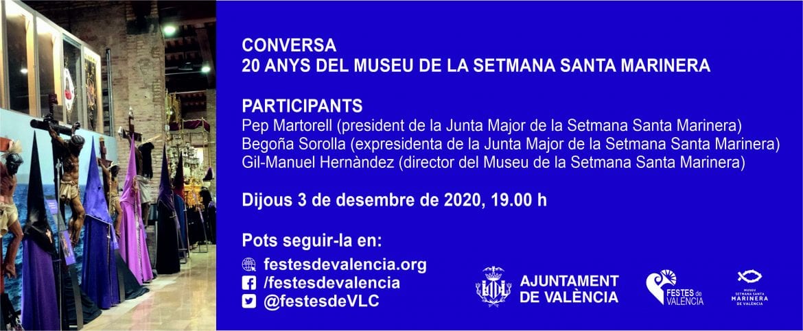 Dijous 3 de desembre, a les 19 hores de la vesprada, se celebrarà la xarrada sobre el vinté aniversari de la creació del Museu de la Setmana Santa Marinera “Salvador Caurín”. En l’acte participaran Pep Martorell, president de la Junta Major de la Setmana Santa Marinera; Begoña Sorolla, expresidenta de la Junta Major de la Setmana Santa Marinera, i Gil-Manuel Hernàndez, director del Museu de la Setmana Santa Marinera.