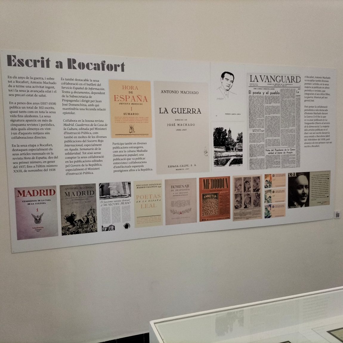 Machado desarrolló una importante labor literaria y cívica durante su estancia en esta tradicional villa valenciana, donde recibió a numerosos intelectuales como León Felipe, Rafael Alberti, Max Aub, María Zambrano, Ramón Gaya, además de Pablo Neruda y Octavio Paz, entre otros.