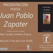 Juan Pablo Zapater (Valencia, 1958) se dio a conocer a finales de los ochenta con la aparición de su libro La coleccionista (Visor, 1990; reeditado en Col. Leteradura, 2013), que fue reconocido con el Premio Fundación Loewe a la Creación Joven en su II edición. Después de un largo tiempo de silencio, y como fruto de la necesidad poética, escribió un segundo libro titulado La velocidad del sueño(Renacimiento, 2012), con el que obtuvo el Premio de la Crítica Literaria Valenciana del año 2013. Actualmente dirige la revista de poesía contemporánea 21veintiúnversos, así como sus colecciones de Cuadernos y Plaquettes.