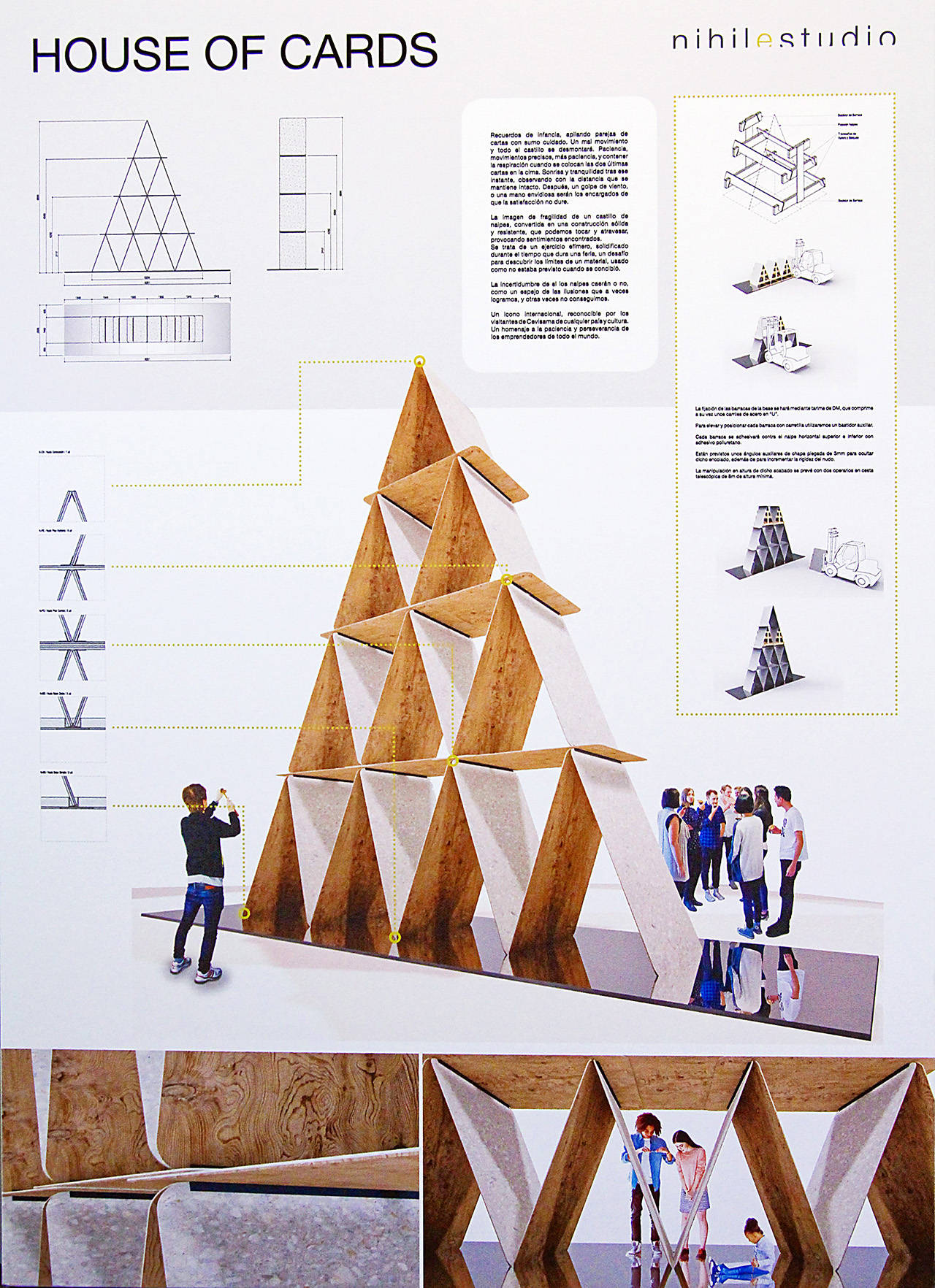 Para la pró­xi­ma con­vo­ca­to­ria de la feria, que será del 28 de enero al 1 de febre­ro de 2019, aca­ba de ser ele­gi­da la pro­pues­ta gana­do­ra: “Hou­se of Cards”, del estu­dio de arqui­tec­tu­ra inte­rior y dise­ño Nihil Estu­dio. El pro­yec­to, según des­cri­ben sus auto­res, “tie­ne por obje­ti­vo cons­truir un cas­ti­llo de nai­pes con tablas de gran for­ma­to de pie­dra sin­te­ti­za­da”. Y será uno de los espa­cios que, den­tro de la expo­si­ción Trans-hitos, visi­ten los cer­ca de 100.000 pro­fe­sio­na­les que se espe­ra que asis­tan a Cevi­sa­ma 2019.