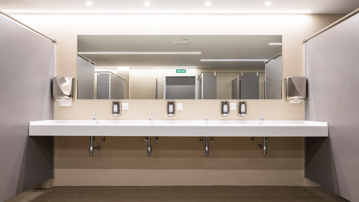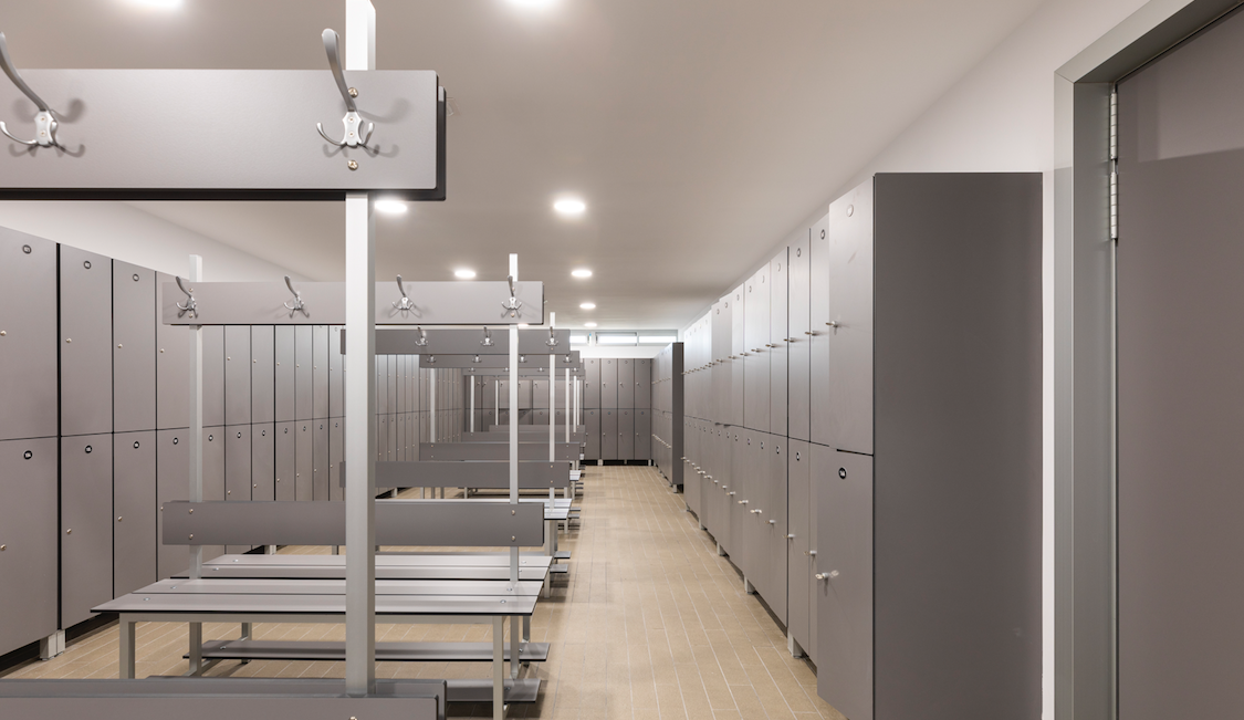 Los colores neutros de su interior contrastan con los azules y verdes que dan forma al paisaje marítimo en el que se enmarca. De ahí que en los baños y vestuarios se haya optado por tonos beiges y grises (presente en las taquillas y el mobiliario) y por los accesorios de baño de Noken como los inodoros Hotels suspendidos, las duchas en acabado cromo o las griferías geométricas de la firma. “Para la estética del conjunto ha sido muy importante escoger materiales que se caracterizan por su alta resistencia y su escaso mantenimiento”, señalan desde Intrados Arquitectura.