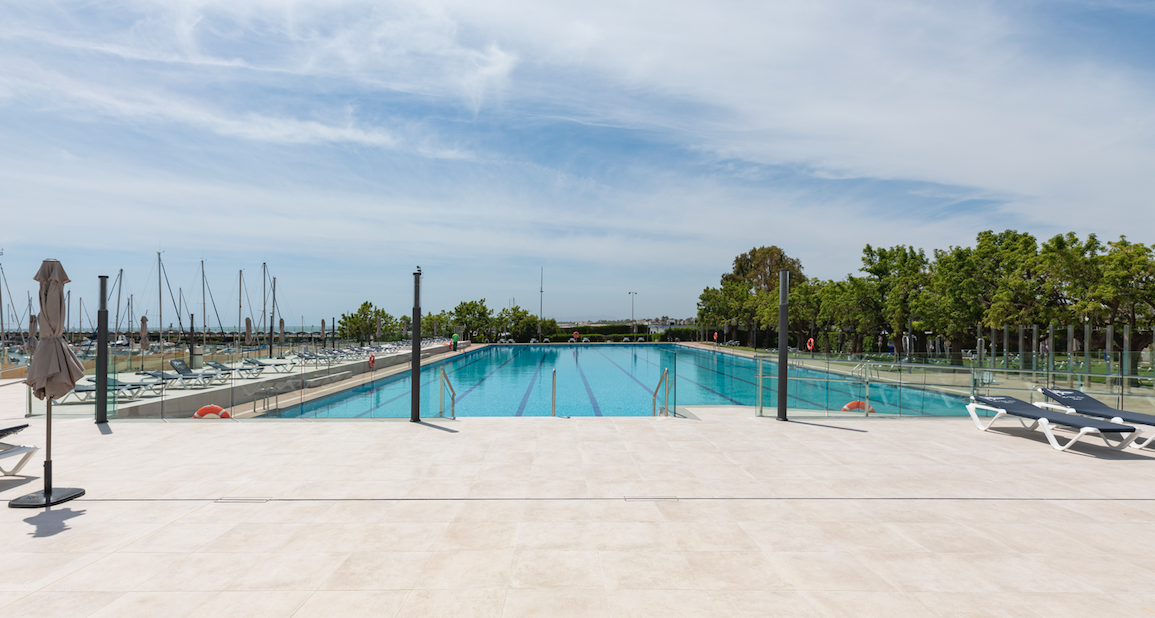 La reforma de la piscina principal, los vestuarios y la fachada con las colecciones PORCELANOSA Grupo ha permitido unificar exterior e interior bajo la misma estética. Ese ha sido el objetivo del estudio Intrados Arquitectura, liderado por Marian Sánchez, María Pérez y José Manuel Mesado, con la aplicación de Bottega White de la firma.