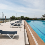 La reforma de la piscina principal, los vestuarios y la fachada con las colecciones PORCELANOSA Grupo ha permitido unificar exterior e interior bajo la misma estética. Ese ha sido el objetivo del estudio Intrados Arquitectura, liderado por Marian Sánchez, María Pérez y José Manuel Mesado, con la aplicación de Bottega White de la firma.