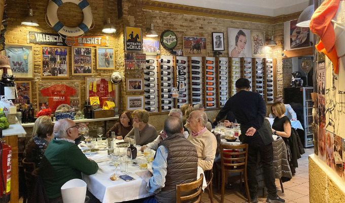 A su alrededor, las mesas, como si fuera un casino valenciano de toda la vida, con mantelería de tela, pizarras a la francesa anunciando las especialidades y las paredes con buen vino y docenas de fotografías y objetos que componen un collage de amistades y personas que acuden al local. Y sobre todo, las mesas del exterior, en la esquina de Conde Altea con Maestro Gozalbo, una de las más apacibles y cercanas del Ensanche al sur de la Gran Vía.