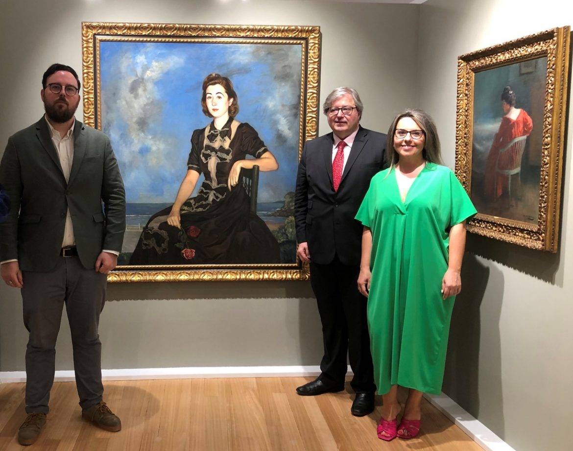 Yuri Aguilar y Luis Trigo flanquean el retrato de una dama en Zarauz, obra de Zuloaga, mientras que a la izquierda de la historiadora Ana Arribas vemos una pintura de Ramón Casas.