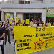 El pasado lunes tuvo lugar una nueva protesta frente a la sede del PSPV-PSOE en Valencia de la “Rebelión de las tijeras rotas” coordinada por el Gremio de Peluquería y Belleza de Valencia y la plataforma de imagen personal Creer en Nosotros, y apoyada por las federaciones y asociaciones de la Alianza Empresarial por la Bajada del IVA a la Imagen Personal debida a la gravísima situación de las pymes y autónomos del sector que siguen padeciendo una caída de facturación del 25,28% en comparación con la de 2019 según el I Estudio sobre la importancia de la mujer en la imagen personal del que se han presentado los datos de la Comunitat Valenciana en la concentración.