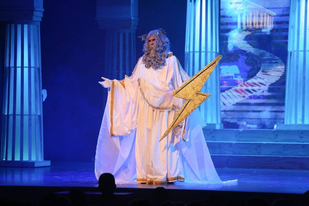 El espectáculo recurre a personajes extraídos de las mitologías clásicas (especialmente la griega y la romana) pero aludiendo, reiteradamente, a otros personajes, historias y referentes culturales actuales, fácilmente reconocibles por el público.