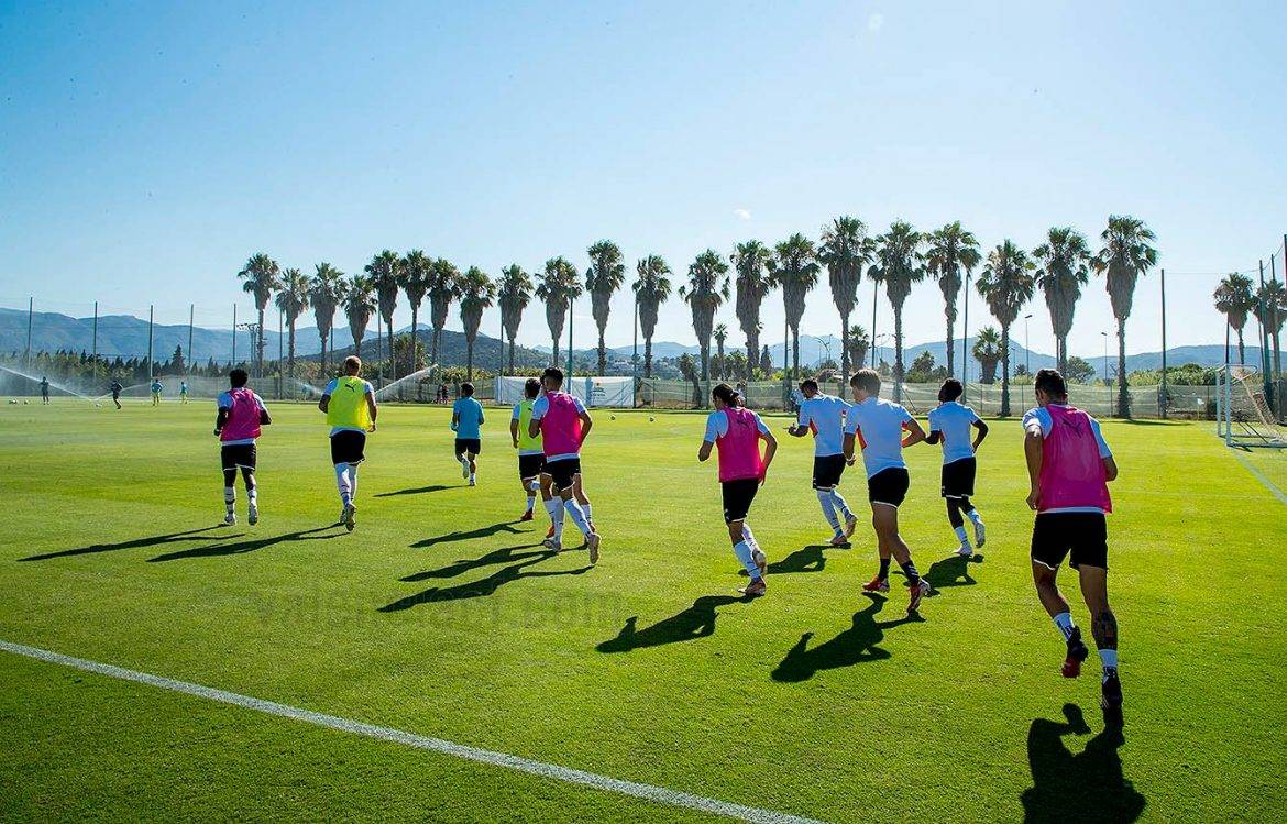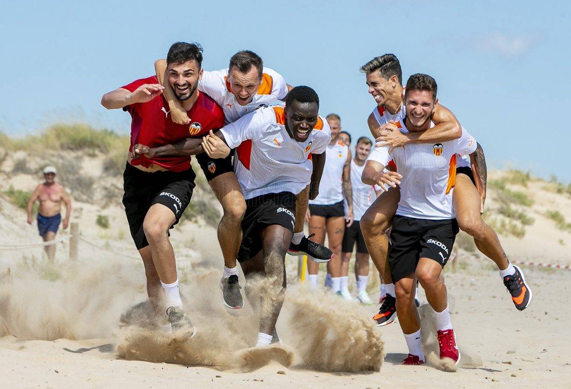 Los juga­do­res del Valen­cia CF entre­nan­do en Oli­va Nova Resort. Foto: VCF
