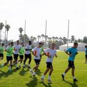 Los juga­do­res del Valen­cia CF entre­nan­do en Oli­va Nova Resort. Foto: VCF