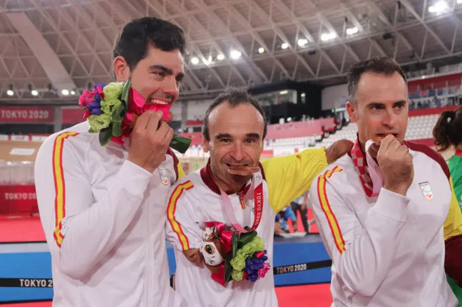 Mucho méri­to tam­bién tie­ne el bron­ce en la prue­ba de velo­ci­dad por equi­pos de cicis­mo en pis­ta con­se­gui­do por Ricar­do Ten. El vete­rano para­de­por­tis­ta valen­ciano, que lle­ga­ba a Tokio con sie­te meda­llas logra­dos en cin­co Jue­gos, en la moda­li­dad de nata­ción, aho­ra com­pi­te en ciclis­mo y ha vuel­to a demos­trar su gran capa­ci­dad y espí­ri­tu de sacri­fi­cio y com­pro­mi­so.