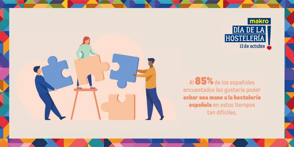 El Día de la Hostelería, que forma parte de un proyecto internacional de METRO AG, matriz de MAKRO, y que cuenta con el apoyo de cerca de 20 compañías relevantes para el sector ‑como Banco Santander, Coca-Cola, Mahou, Solán de Cabras, J&B, Unilever Food Solutions, Ariel, Fairy, Pasabahçe o Nude, entre otras- ha puesto en marcha diversas acciones durante las semanas previas para dinamizar la actividad de los hosteleros y potenciar su visibilidad.