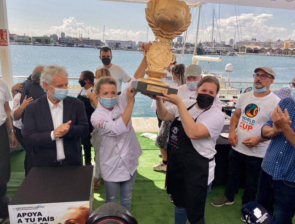 La Marina de València ha acogido hoy las semifinales y final del World Paella Day Cup 2021, una competición en la que 10 chef de todo el mundo han batallado por alzarse con la deseada copa. Tras el veredicto del jurado, ha sido Noelia Pascual, de España, quien ha resultado vencedora del concurso de paella en una final muy reñida en la que la chef Natalie Curie, de EEUU, se ha quedado únicamente a 3 puntos (de un total de 101).