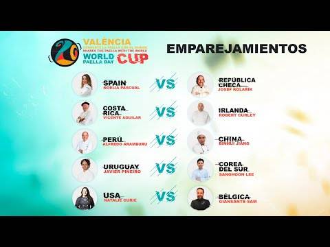 La jornada ha arrancado a las 10.00 horas con las competiciones, que han enfrentado a Uruguay contra Corea del Sur, Costa Rica contra Irlanda, Perú contra China, Estados Unidos contra Bélgica y España contra República Checa. Así, a la final, que ha empezado a las 13.00 horas, han llegado Costa Rica, China, Uruguay, España y EEUU. Finalmente ha sido España la vencedora que ha optado por competir con un “arroz del pobre” con cebolla, patata y bacalao, en la semifinal, y con una “paella típica alicantina de conejo con caracol serrana” en la final.