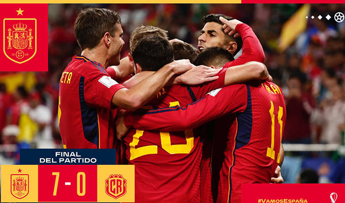 La selección española de fútbol se estrenó este miércoles, día 23 de noviembre, en el Mundial de Qatar contra Costa Rica y lo hizo por todo lo grande. Tanto es así que consiguió la mayor goleada en la historia de la competición a favor de la roja al conseguir anotar, nada más y nada menos, que siete goles contra el país centroamericano.