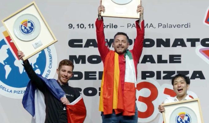 Francis, imparable: Revalida su corona y conquista por cuarta vez el título mundial con sus acrobacias de pizza. La Selección Española de Pizzeros Artesanos, bajo la dirección de Jesús Marquina, “Marquinetti” arrasa en el Mundial de Parma con un triplete en las categorías Free Style, Pizza Due y Senza Glutine.