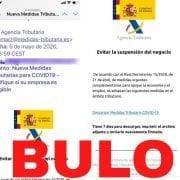 Nos habéis preguntado por un email que supuestamente es de la Agencia Tributaria con el asunto “Nueva Medidas Tributarias para COVID19 — Verifique si su empresa es elegible”. Dentro del mensaje aseguran que para “evitar la suspensión del negocio” tienes que descargarte un archivo adjunto y “enviarlo nuevamente firmado”. Es un bulo: se trata de un intento de phishing, una técnica que se utiliza para intentar hacerse con tus datos personales.