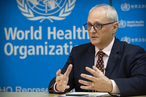 In this Jan. 23, 2020, photo, Gauden Galea, the World Health Organization (WHO) representative to China, speaks during an interview with the Associated Press at the WHO’s offices in Beijing. (AP Photo/Mark Schiefelbein)