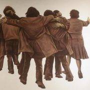 A continuación, con fondo blanco como gran protagonista, llegan en 1975 Gente Corriendo o La ventana. No es fácil contemplar esta última sin pensar en Enrique Ruano, el estudiante antifranquista que murió en 1969 al ser arrojado desde un séptimo piso mientras permanecía detenido por la Brigada Político-Social. Posteriormente, en 1976, llegarían Silla vacía, Tribunal de Orden Público o Agresión. Juntar todas estas obras —algo que nunca se había hecho en España— permite cuestionar la interpretación de El abrazo, pues se lee mucho mejor como el reencuentro entre unos detenidos o presos políticos y sus seres queridos.