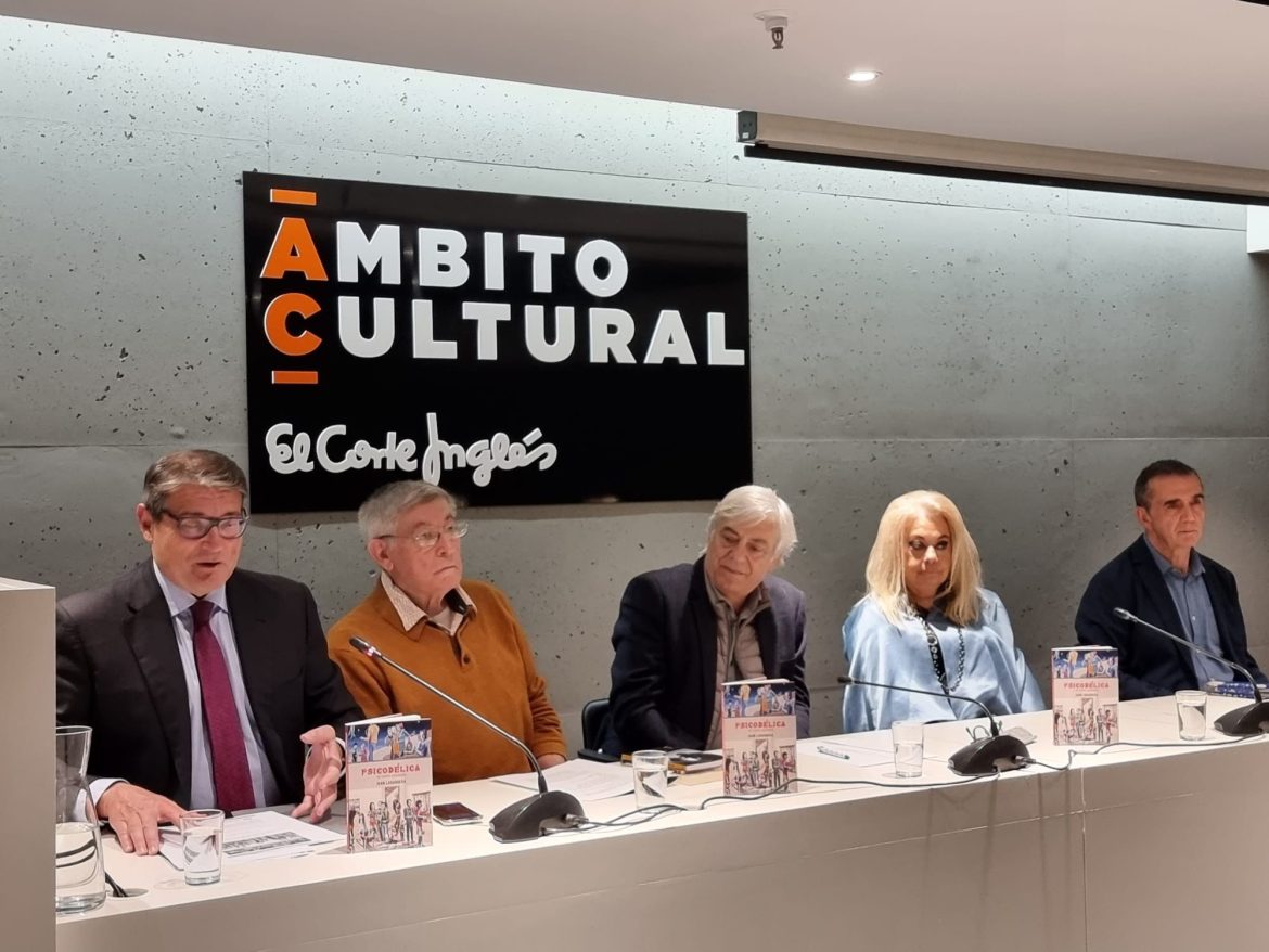 Más de un centenar de personas acudió a la presentación del libro Psicodélica. Un tiempo alucinante (Editorial Contrabando), que tuvo lugar en el Ámbito Cultural de El Corte Inglés el pasado miércoles. El acto estuvo precedido por una charla en la que tomaron parte Pau Pérez Rico (responsable de comunicación de El Corte Inglés), los periodistas Rafa Marí y Lucas Soler, y la musicómana pop Pilar Cano. Entre los presentes estuvo la mítica Pili Corti (o Pili Discos), que durante esa época fue responsable de la sección de discos de los grandes almacenes.