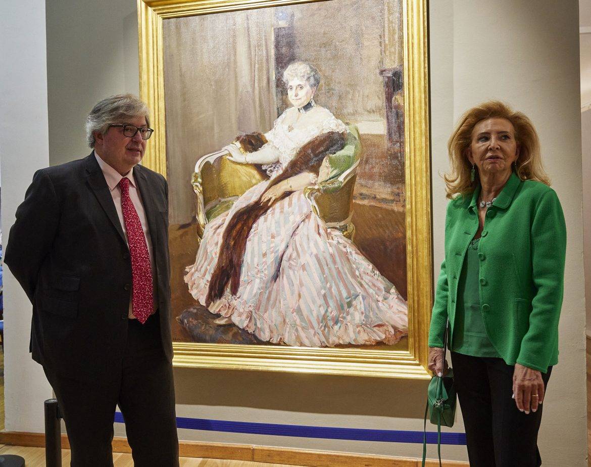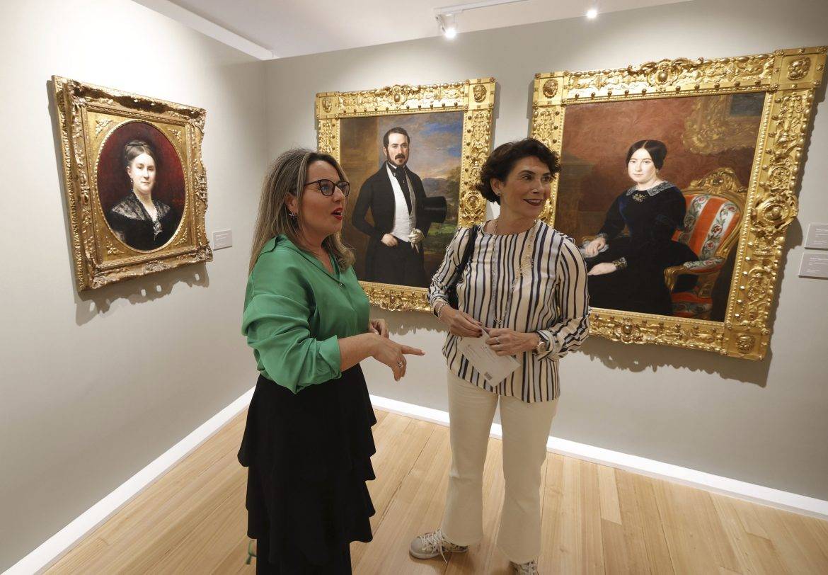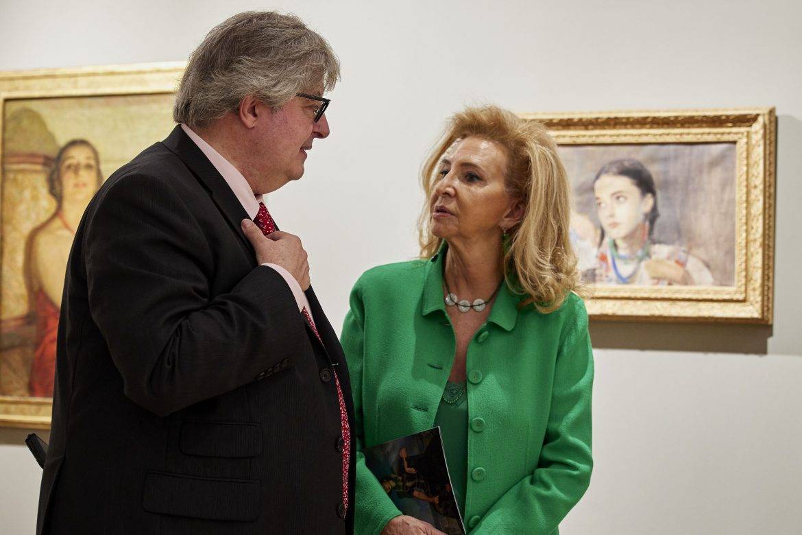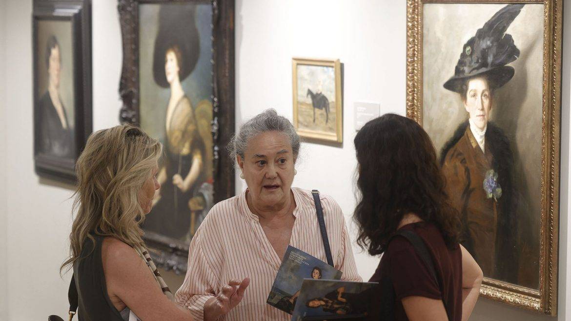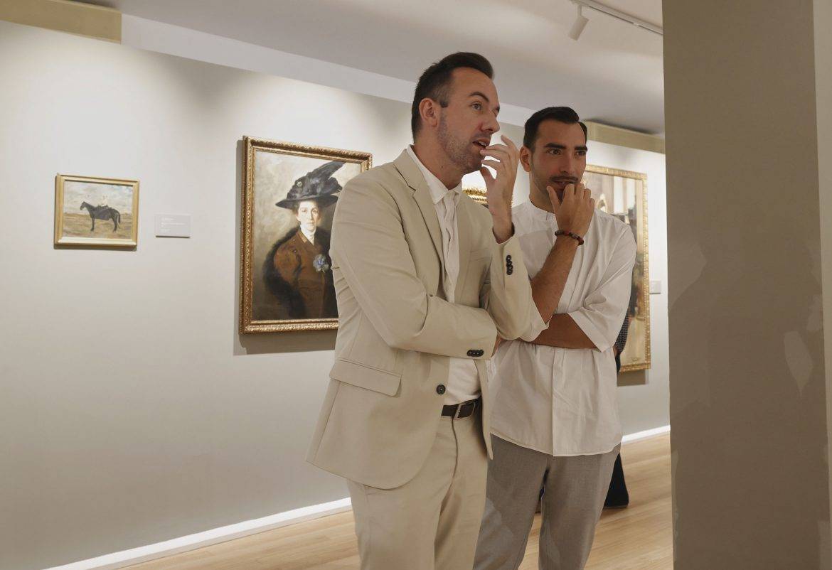 Yuri Aguilar y Luis Trigo flanquean el retrato de una dama en Zarauz, obra de Zuloaga, mientras que a la izquierda de la historiadora Ana Arribas vemos una pintura de Ramón Casas.