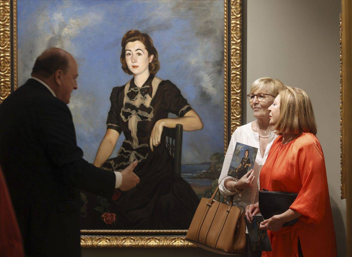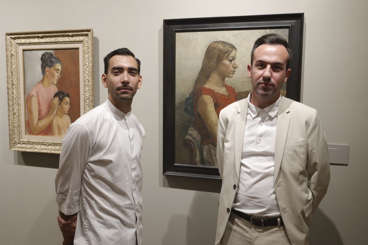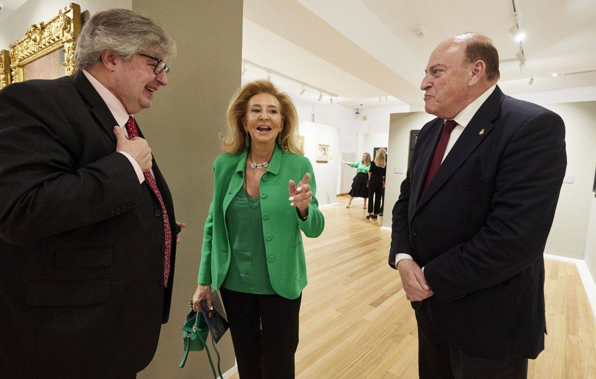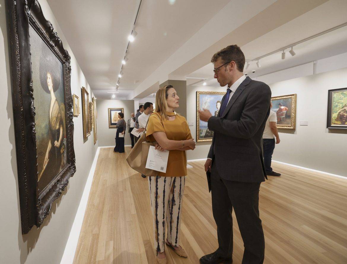 Yuri Aguilar y Luis Trigo flanquean el retrato de una dama en Zarauz, obra de Zuloaga, mientras que a la izquierda de la historiadora Ana Arribas vemos una pintura de Ramón Casas.