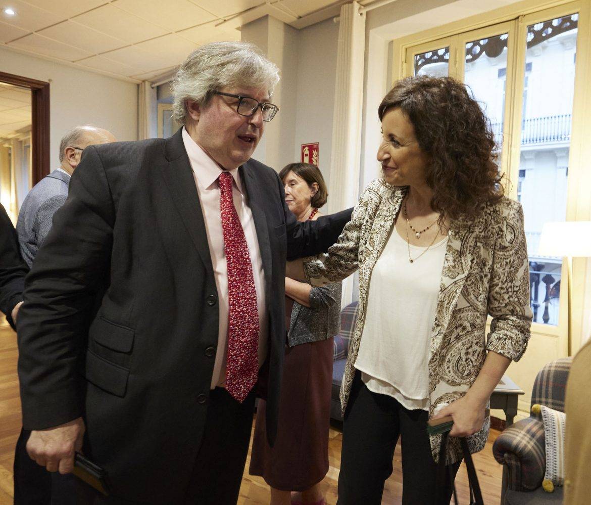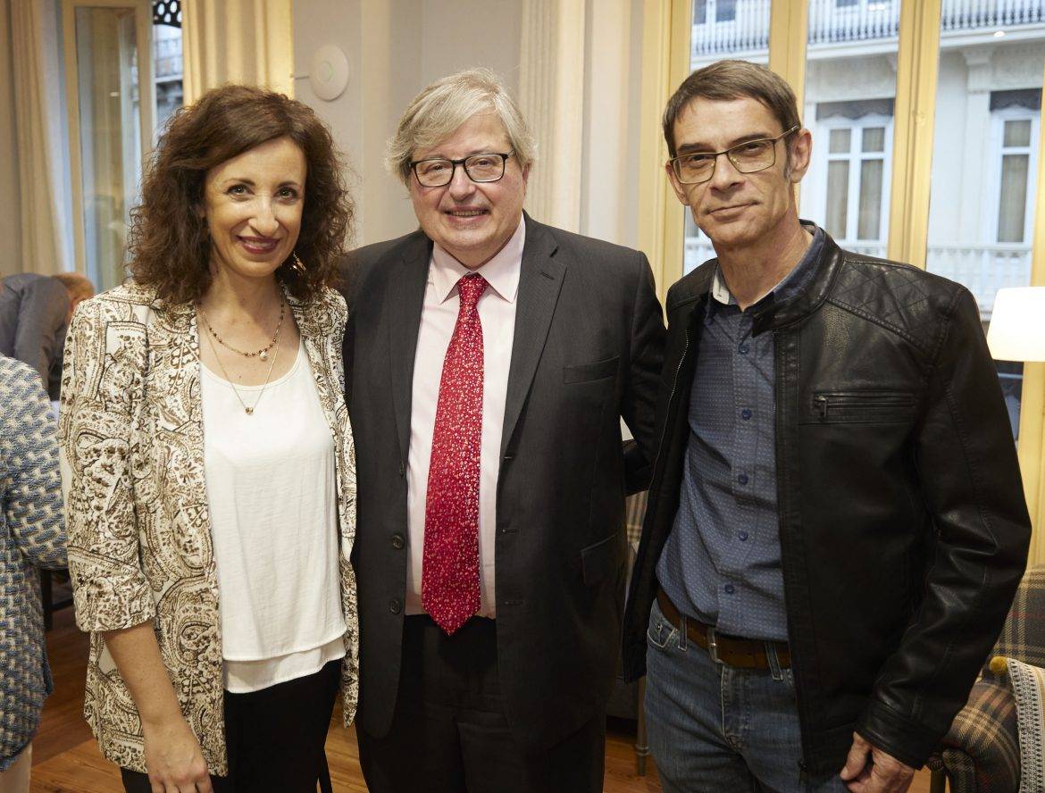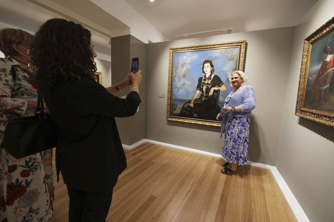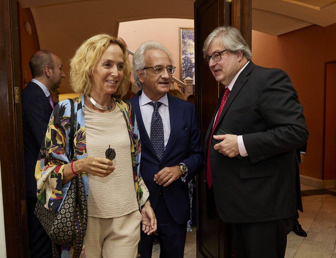 Yuri Aguilar y Luis Trigo flanquean el retrato de una dama en Zarauz, obra de Zuloaga, mientras que a la izquierda de la historiadora Ana Arribas vemos una pintura de Ramón Casas.