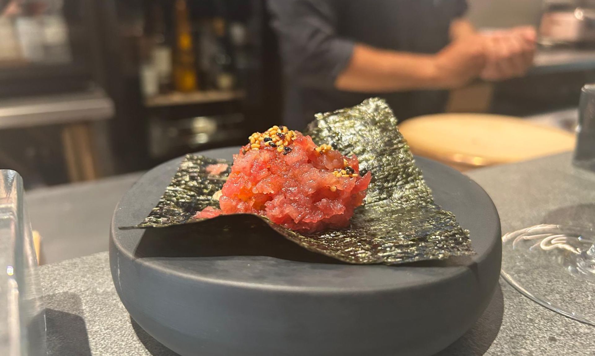 Con apenas 10 plazas en barra y cuatro mesas en el comedor, Haku ofrece una propuesta íntima y exclusiva donde el comensal es testigo en directo del proceso de creación de cada elaboración.