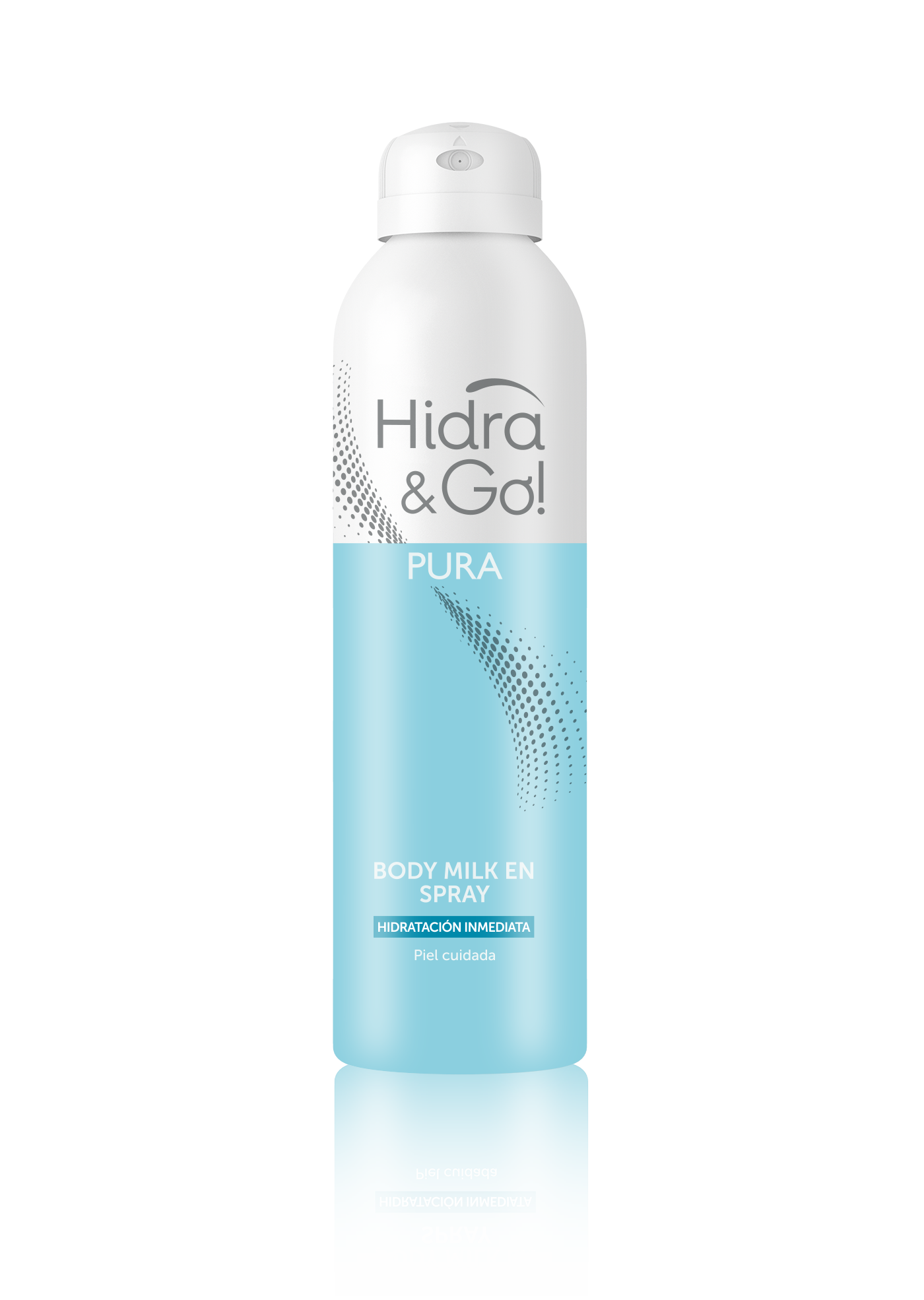 Se trata del nuevo Body Milk Hidra & Go!, una loción corporal en spray con un nuevo concepto de hidratación que no te dejará indiferente. Su fácil aplicación en spray te permitirá aplicar la crema rápidamente por todo el cuerpo, incluso poniendo la botella boca abajo. Sólo necesitarás masajearlo ligeramente durante unos segundos para que la loción se absorba sin dejar en tu piel una sensación grasa ―ideal para todas aquellas que no soportan vestirse con la piel ligeramente humedecida por la acción de la crema hidratante―.