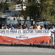 “Res­pe­to para el sec­tor turís­ti­co” era el prin­ci­pal lema de la mani­fes­ta­ción de este domin­go en Beni­dorm.