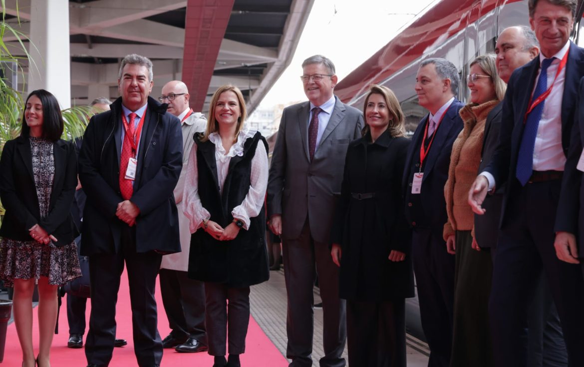 El tren ha llegado puntual a la estación Joaquín Sorolla de Valencia, con un nutrido grupo de representantes institucionales y económicos a bordo. Ya en la ciudad del Turia, en la propia estación, se ha celebrado un acto institucional en el que han participado el presidente de Iryo y Air Nostrum, Carlos Bertomeu; la ministra de Tranportes, Raquel Sánchez; el presidente de la Generalitat, Ximo Puig; el CEO de Trenitalia, Luigi Corradi; y el de Globalvia, Javier Pérez Fortea.