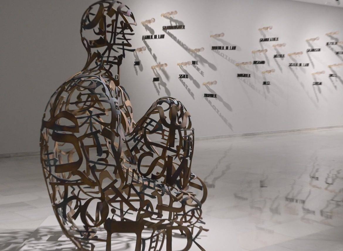 Para entrar en su exposición, se debe traspasar una cortina de letras hecha de poemas del Cantar de los cantares. «Siempre me ha parecido que las letras delante de una pared blanca es como si estuvieran a punto de ser fusiladas», ha confesado Plensa, que siempre se pregunta cómo pueden ser por detrás o por un lado y quiere «librarlas de esa prisión blanca que es el papel».