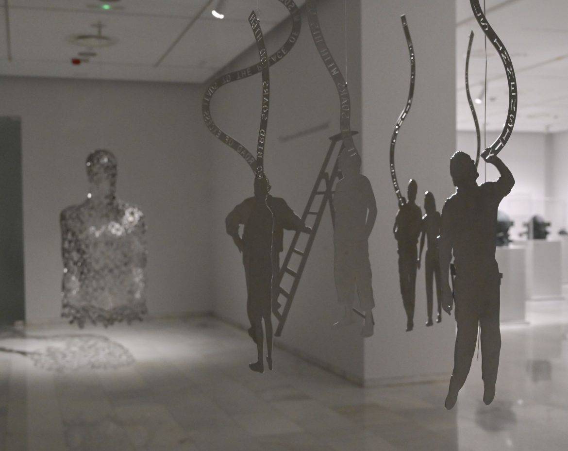 Unas inquietudes que se dejan ver en la selección a través de cerca de un centenar de piezas «íntimas» y datadas entre 1990 y la actualidad, algunas inéditas para el público y creadas durante el confinamiento, otras «viajeras» como la icónica Together (2014) expuesta en la Bienal de Venecia de 2015 y que no se ha exhibido desde entonces. Una mano de acero inoxidable que estuvo en la Abadía de San Giorgio Maggiore, pero no hace alusión a la religión, sino a «la espiritualidad que puede unirnos a todos».