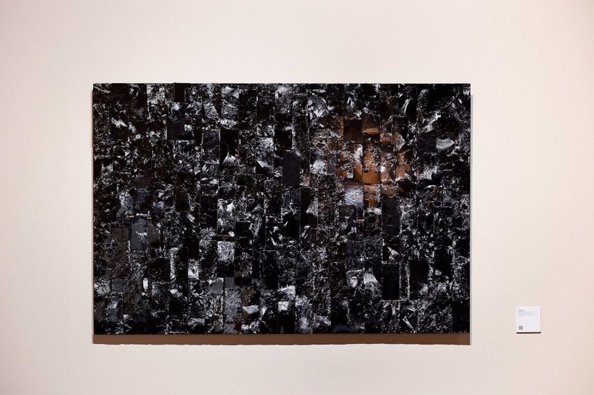 La obra ganadora, está creada mediante el ensamblaje de pantallas de teléfonos móviles. Una pieza con un fuerte carácter escultórico, donde la acumulación de pantallas de móviles genera una brillante superficie negra, a modo de espejo, que se convierte en una metáfora del blackmirror.