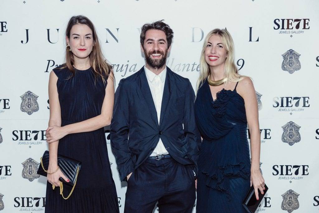 No quisieron perder la ocasión de expresar su cariño al homenajeado los también creadores y agremiados Luis Rocamora, Aguja Brillante 2018, Miguel de Cruces, los representantes de la firma Menaki, la presidenta del Ateneo Mercantil de Valencia, Carmen de Rosa, el empresario Alfredo Esteve, Mamen Puchades y, acompañando al diseñador Elena Giménez y Greta Borrás junto a amigos y familiares, como tampoco faltaron al evento un nutrido grupo de estudiantes de la escuela del Gremio.