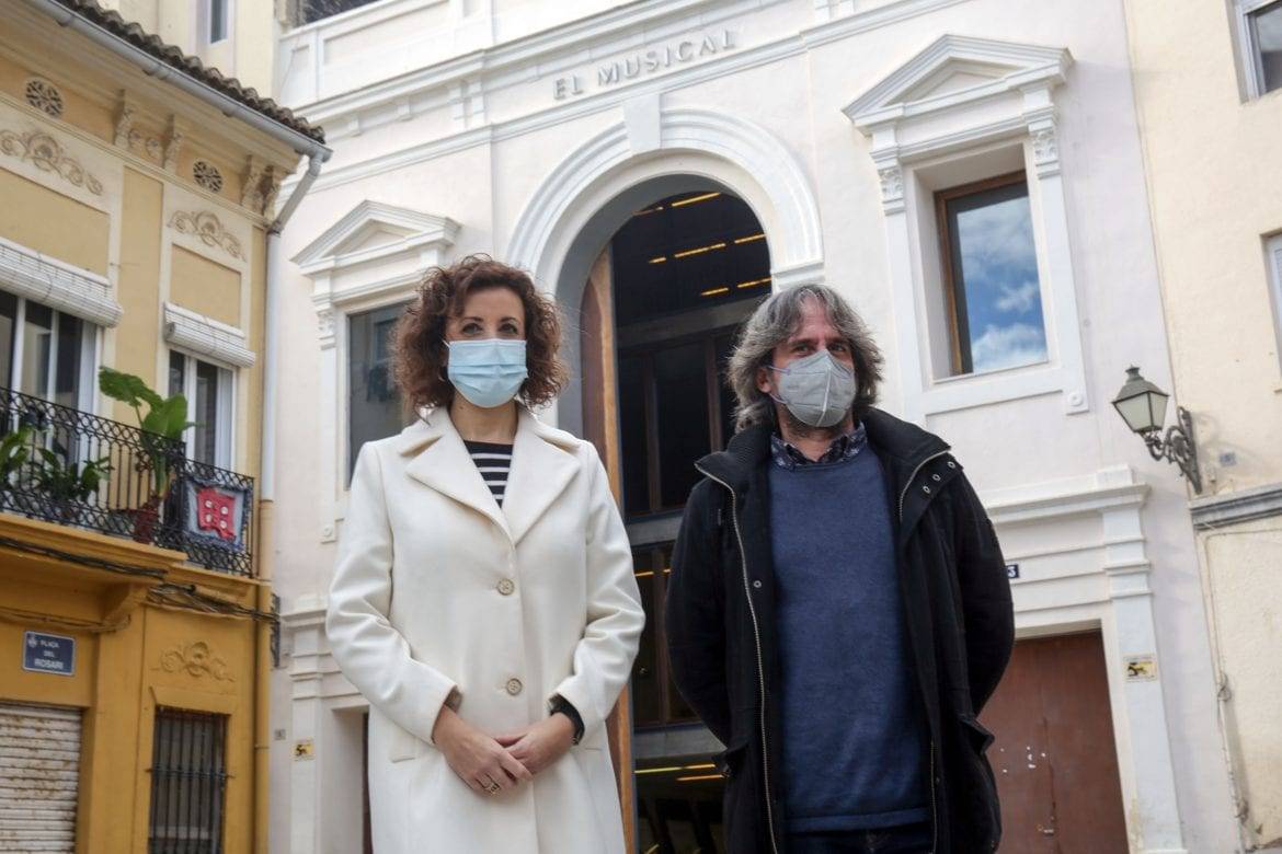 La con­ce­ja­la de Acció Cul­tu­ral del Ayun­ta­mien­to de Valen­cia, Mai­te Ibá­ñez y Juan­ma Arti­got, nue­vo coor­di­na­dor artís­ti­co del Tea­tre El Musi­cal (TEM).