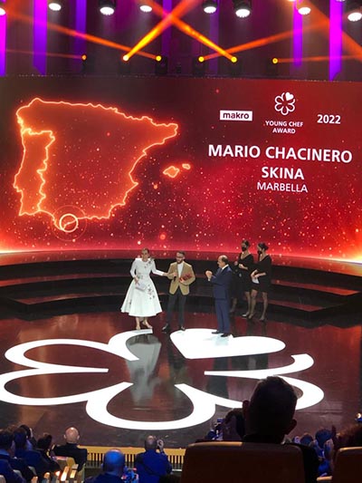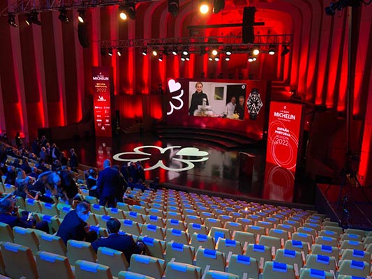 A esas alturas, obviamente, el personal estaba ansioso por conocer su suerte en el reparto de parabienes. Pero no. Antes hubo un reconocimiento a los estrellados del año pasado, el del confinamiento sin gala… Así que subieron todos los del 2021 con Nazario Cano a la cabeza, ahora jugando para la capital murciana en Odiseo. Más tarde dieron los nuevos premios al talento joven, equivocando el nombre en el rótulo del ganador (Mario Cachinero, y no Chacinero, de Marbella), y otro al magisterio del incombustible Berasategui. A ese nuevo preámbulo siguieron los tréboles verdes. Y luego sí, empezaron las nuevas estrellas: un total de 33.