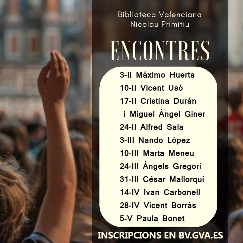 La Biblioteca Valenciana Nicolau Primitiu ha desvelado el listado de escritores que participarán en los “Encuentros de escritores” 2021 que esta edición contempla la posibilidad de que sean encuentros presenciales y “online”.