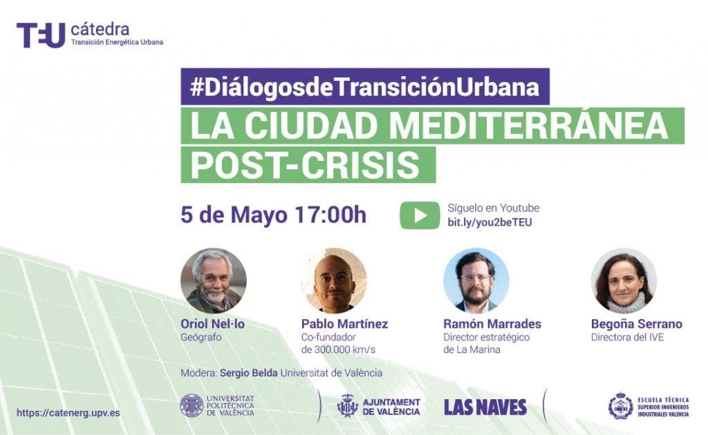 La crisis de la COVID-19, pero también otras crisis como la climática, de desigualdad, de cuidados o de segregación urbana nos sitúan ante la urgencia de plantearnos qué tipo de ciudades mediterráneas desearíamos habitar después de la crisis. Sobre ello pretende reflexionar la webinar La ciudad mediterránea pors-crisis, que organizan este martes 5 de mayo la Cátedra de Transición Energética Urbana de la Universidad Politécnica de Valencia y Las Naves.