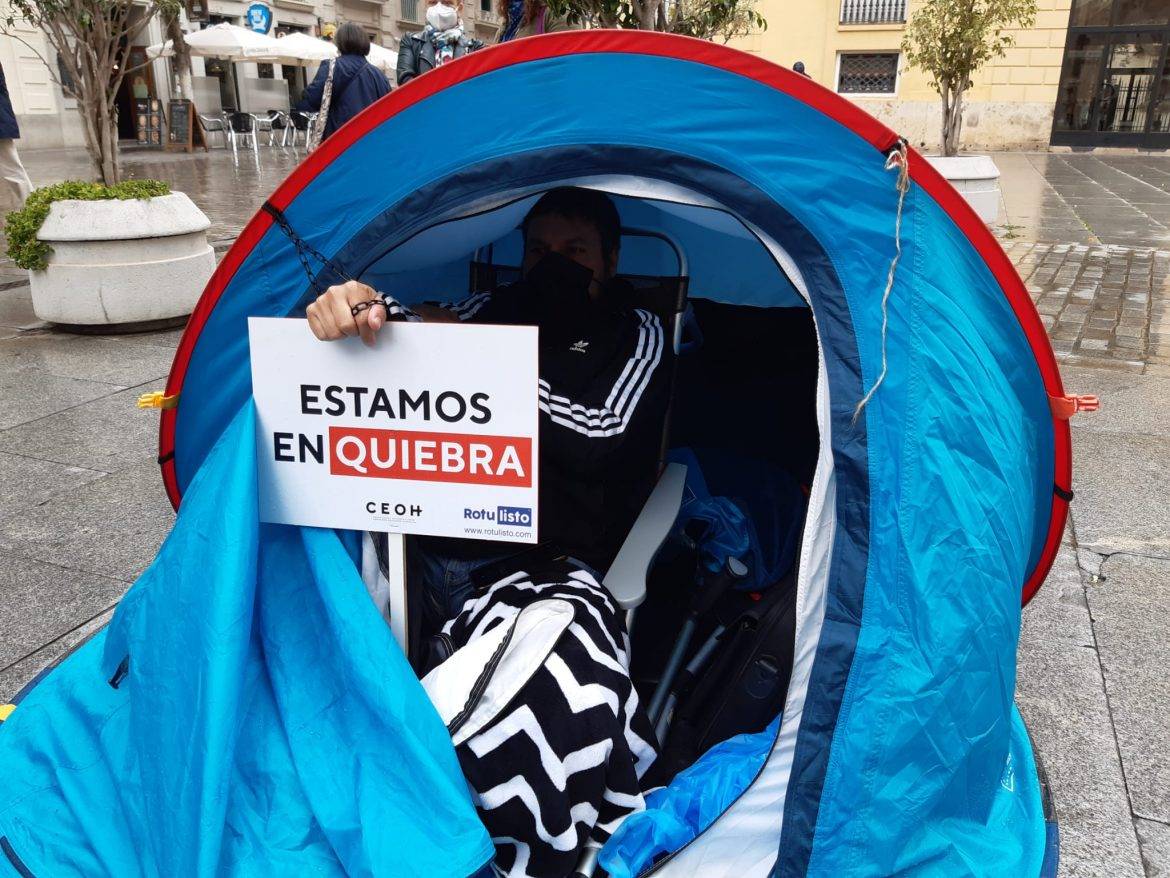 Desde la CEOH, ahondan en que, “por desgracia, trece días después de iniciar la acampada, las anuncios del Consell sobre el ocio nocturno siguen siendo simples globos sonda que no concretan ni definen un plan de ayudas económico específico para el ocio nocturno”.