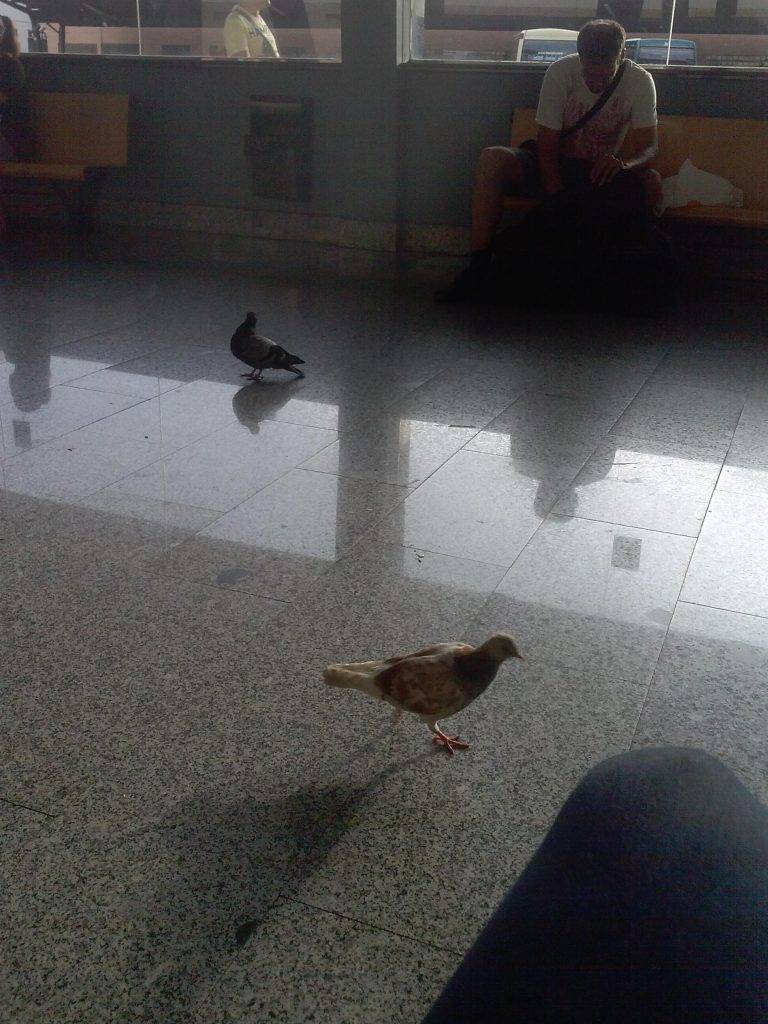 Palo­mas en la sala de espe­ra de la esta­ción de auto­bu­ses de Valen­cia.