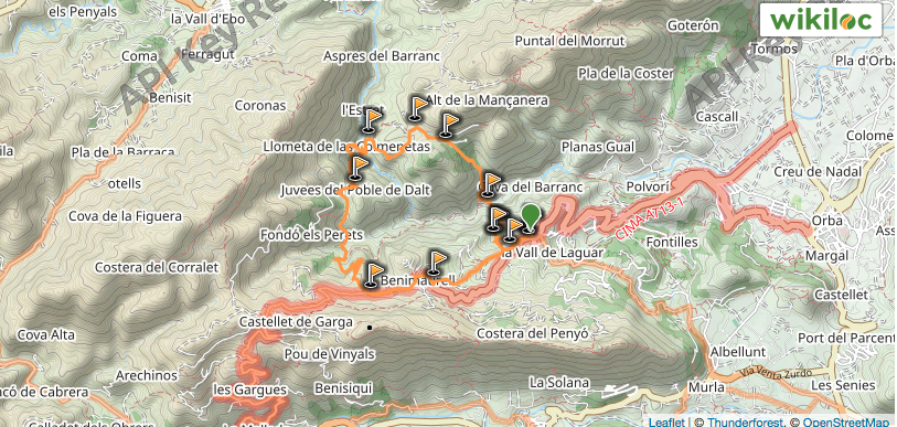 Seguiremos avanzando por sus bajadas y subidas hasta llegar a la Font de Reinós y de ahí a Juvees de Dalt para continuar hacia la localidad de Benimarurell, donde acaba la ruta senderista. Desde allí tomaremos un relajado y tranquilo paseo de unos dos kilómetros de regreso a Fleix durante el que podremos comentar las sensaciones y experiencias vividas en esta fantástica y sobrecogedora “Catedral del Senderismo”.