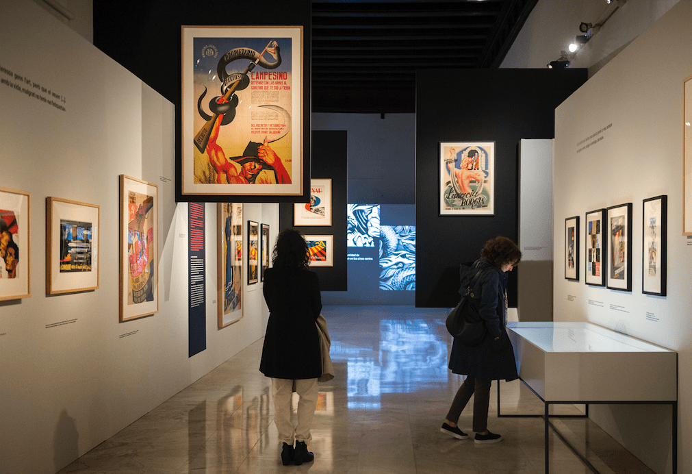 El recorrido por la obra de Renau propuesto por la Diputació concluye con su exilio mexicano tras la derrota de los republicanos en la Guerra. Durante el conflicto bélico, el artista se centró en la promoción de películas comunistas, con un diseño influido por el constructivismo ruso.