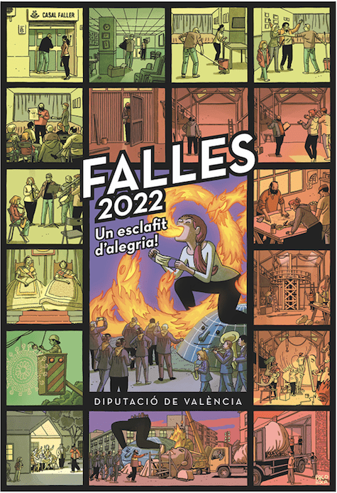 La Diputación de Valencia ha presentado este martes el cartel de Fallas 2022, elaborado por el dibujante e ilustrador valenciano Paco Roca, y que servirá de imagen para las fiestas falleras que se celebran en numerosos municipios de la provincia.