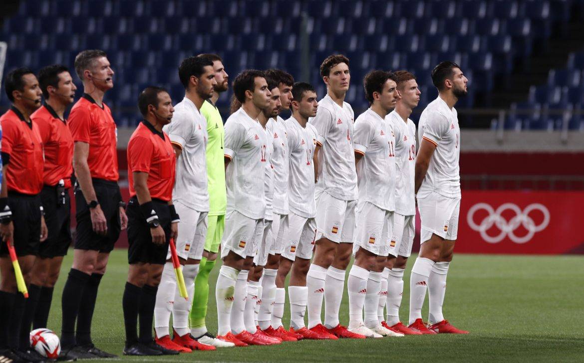 En el centro del campo estaban el trío formado por Mikel Merino, Zubimendi y Pedri. Mientras que la tripleta atacante la conformaban Oyarzabal, Dani Olmo y el gran goleador de estos Juegos, Rafa Mir, que logró un triplete en cuartos de final.