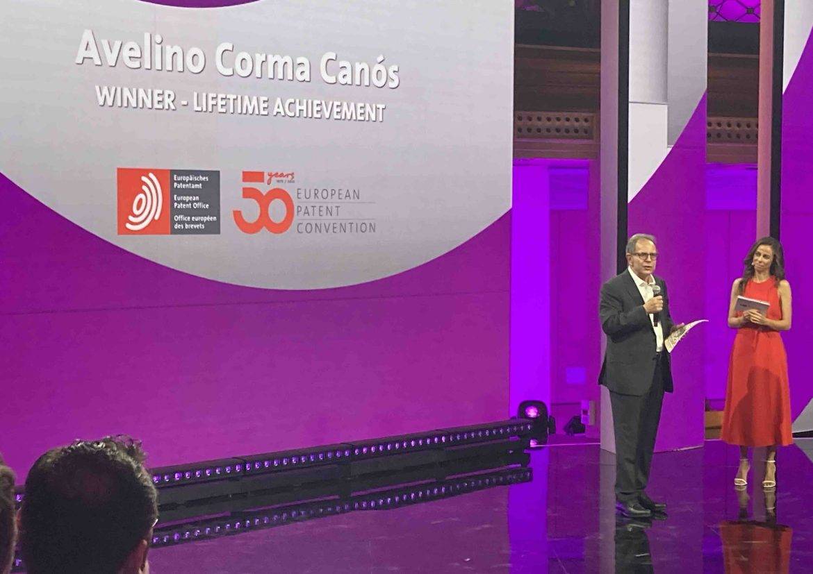 La culminación de la citada Fiesta de la Invención de la EOP, comenzó con la proyección de un audiovisual que relataba la vida, trayectoria y los méritos humanos y científicos y de inventor de Corma, pero que ha desarrollado su carrera científica en Valencia, tras su paso por Canadá. Los méritos que para que la OEP le hayan otorgado su mayor premio son abrumadores, sobre todo, en este caso, por su intensa y cointinuada relación con la propia Oficina de Patentes Europea en la que ha registrado más de 200 solicitudes de patentes europeas (de las que varias decenas están en aplicación en procesos industriales a gran escala), que unidas a sus 1.200 publicaciones científicas y a la autoría de varios libros, entre ellos: Catalytic Cracking o Introduction to Zeolite Molecular Sieves, componen una trayectoria de excelencia científica casi imbatible.