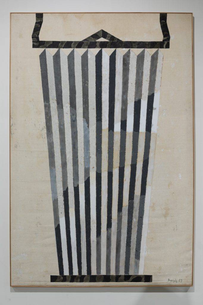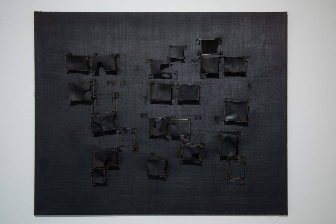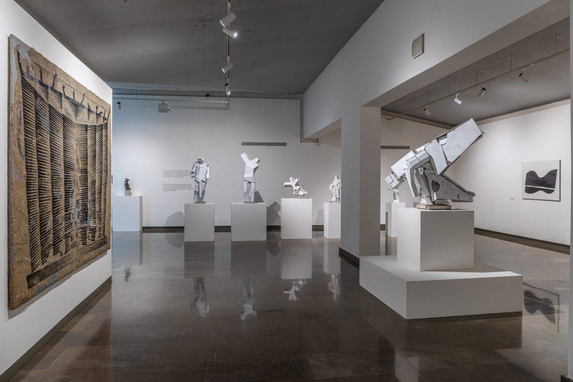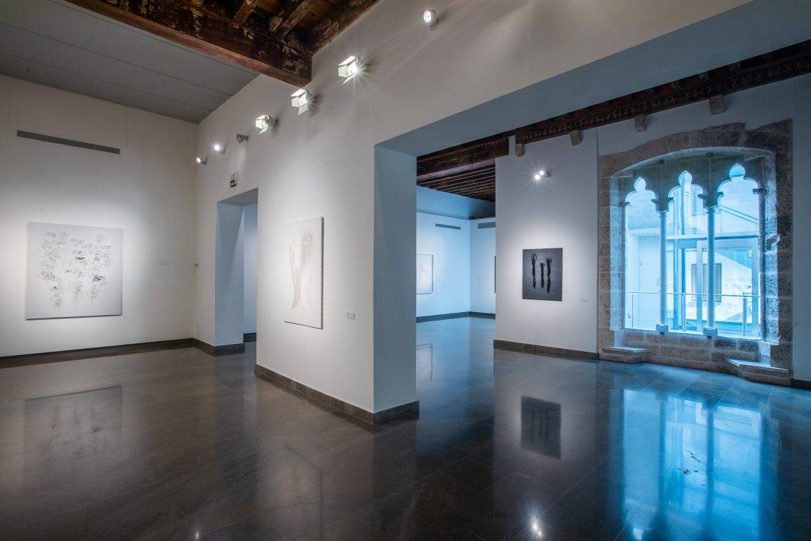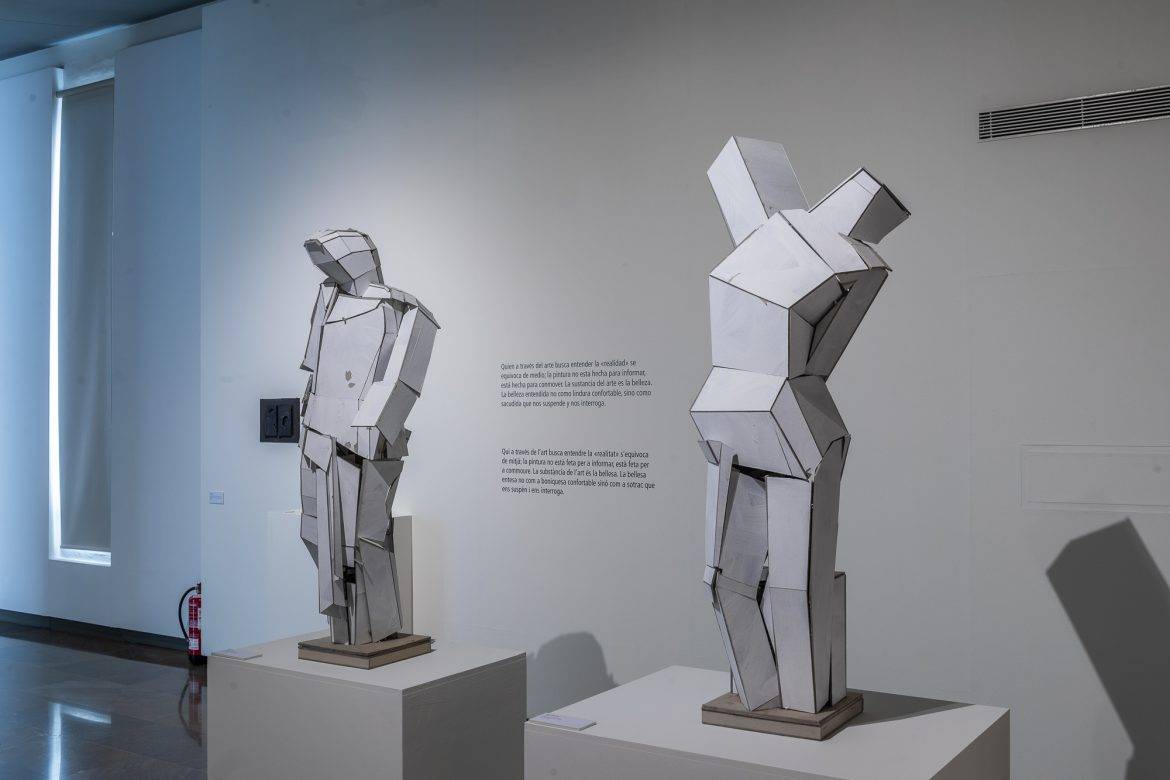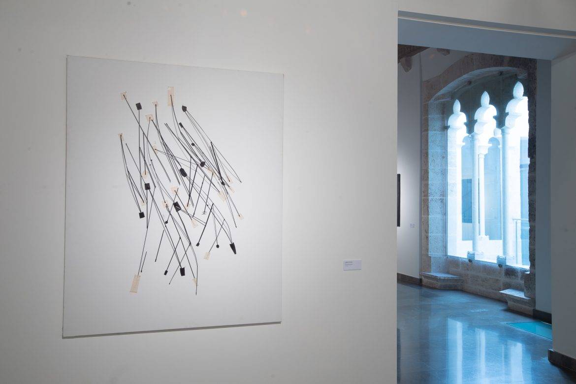 La exposición “Des del silenci” repasa sus últimos treinta años de producción cuando sus cuadros van perdiendo el color, apostando por imágenes austeras en blanco y negro y donde comienzan a aparecer otros elementos que va ensamblando en sus cuadros, materiales poco nobles como hilo de coser, caucho o varillas, elementos cotidianos a los que iba dando forma hasta incorporarlos en la obra de arte, hasta llegar a sus esculturas.