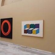 La muestra comienza con una selección de artistas del Grupo Parpalló y “asimilados”, ha dicho Manuel Chirivella, que fueron los primeros en plantear un arte geométrico en Valencia hacia finales de los años 50; de tono constructivo, experimental y normativo. A esta época pertenecen las piezas de Eusebio Sempere, con un Gouasche geométrico de su época parisina, junto a varias tablas suyas de los años 70 en los que la geometría cobra mayor presencia.