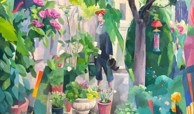 La mayoría de las obras que la componen están inspiradas en diversos rincones de un jardín familiar situado al sur de Londres, donde la artista suele pasar largas temporadas. En los trabajos se utilizan diferentes gamas de color para interpretar la profusión de luces cambiantes del día: gamas apasteladas, con sombras iluminadas suavemente, que intentan captar la luz plateada de los días nublados en Inglaterra, como lo hacía Alfted Sisley en sus deliciosos paisajes impresionistas de la campiña inglesa.